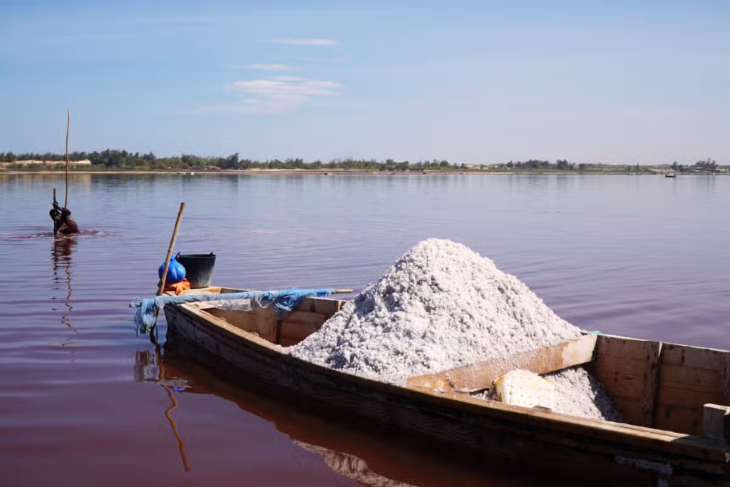 Además de su llamativo color, el Lago Rosa es una importante fuente de sal para las comunidades locales.