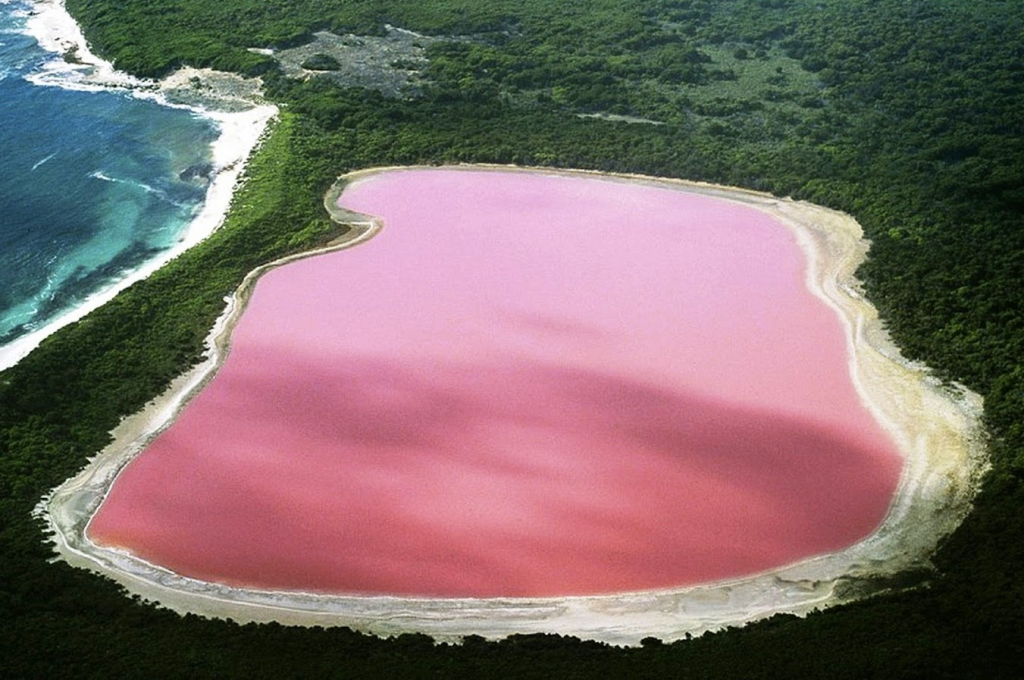 Este espectacular lago debe su nombre a la tonalidad rosada de sus aguas, que parece sacada de otro planeta.