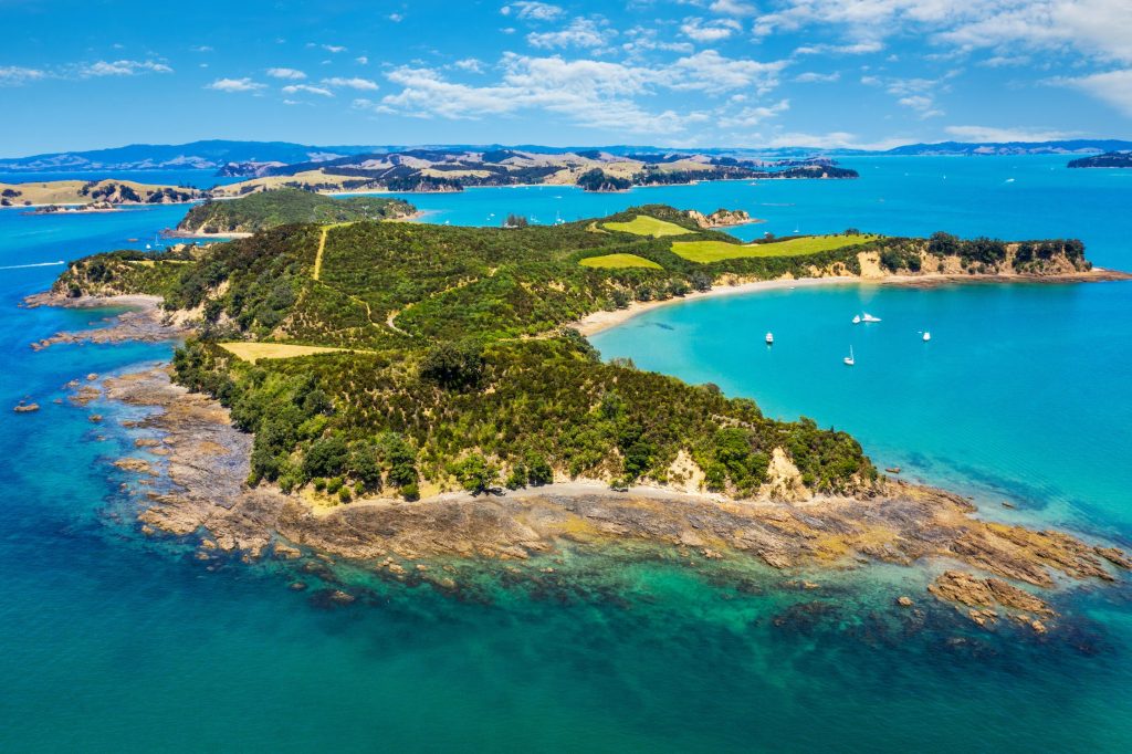 La Bahía de las Islas es uno de los destinos más fascinantes de la isla norte de Nueva Zelanda. Con sus 144 islas e impresionantes playas de arena blanca, cuenta con una gran variedad de especies marinas y aves.